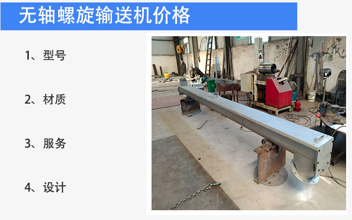 无轴螺旋输送机在许多的行业都有使用,所以无轴螺旋输送机会有很多根据行业不同而出现的不同型号,如:管式无轴螺旋输送机就是为污泥输送,生活垃圾输送等一些附有粘性和缠绕性的物料所设计的,而管式无轴螺旋输送机的价格也就在4000-8000元/台之间,对于管式螺旋输送机的差价是因为,管式螺旋输送机具有定制的渠道,定制价格大概在10-49米(3800元),≥ 50米时(3800元+400元/米)这样的一个价格及计算当中。